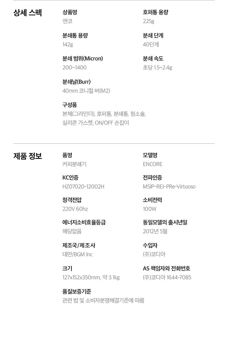 바라짜 엔코 블랙 커피 전동 그라인더 원두 가정용 요약정보 및 구매
